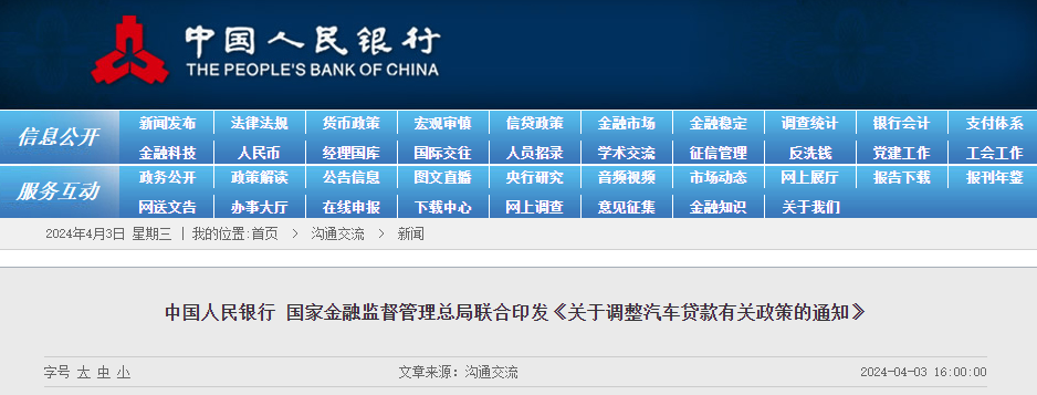 中國(guó)人民銀行等兩部門(mén):鼓勵(lì)金融機(jī)構(gòu)適當(dāng)減免汽車以舊換新提前結(jié)清貸款產(chǎn)生的違約金