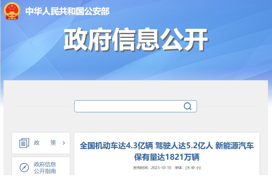 公安部:截至2023年9月底全國機動車達4.3億輛新能源汽車保有量達1821萬輛