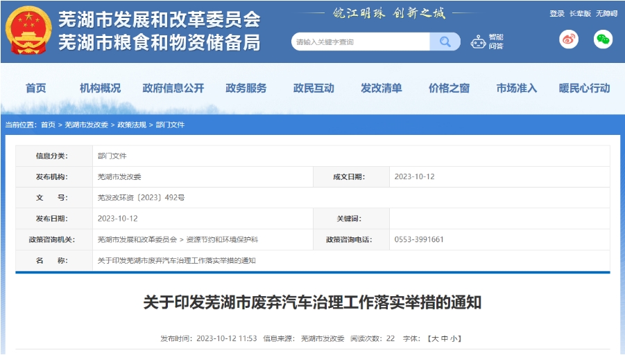 安徽省蕪湖市:建立健全廢棄汽車長效治理機制健全報廢汽車回收利用體系